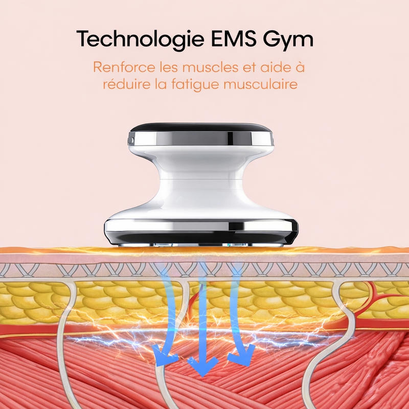 Notre EMS LED Sculpt Corps combine plusieurs technologies utilisées dans les instituts esthétiques : stimulation musculaire EMS et radiofréquence chauffante.